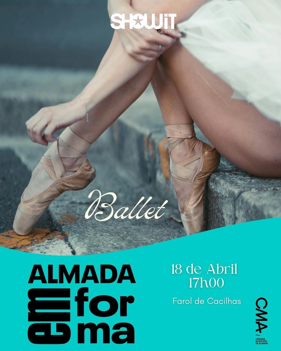 No dia 18 de Abril de 2026, o Farol de Cacilhas recebe duas aulas dinamizadas pela academia: Ballet, das 17:00 às 17:45, para maiores de 13 anos, e Breaking, das 18:00 às 18:45, aberto a todas as idades.