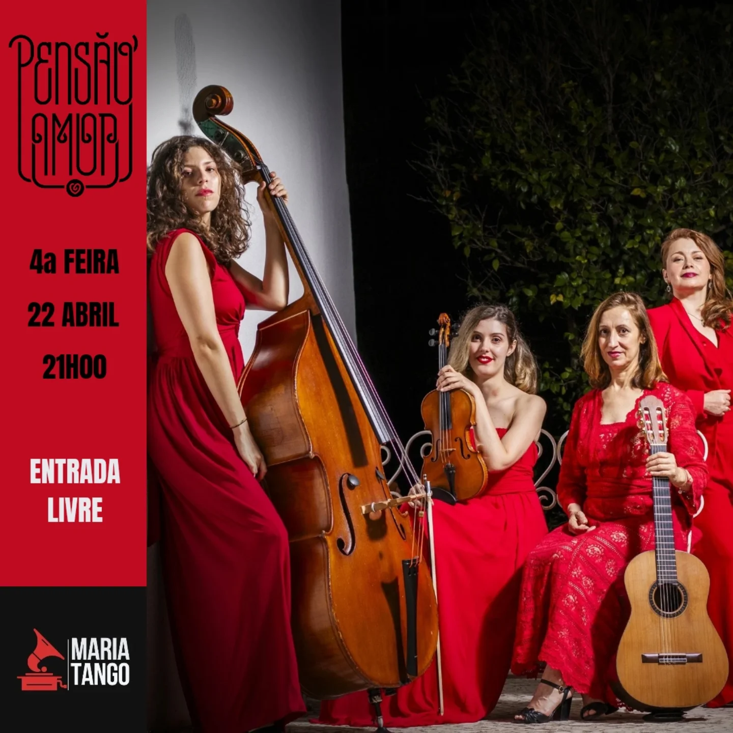 A programação começa às 21:00 com warm-up de TDJ Nelson Alves "El Turco" e segue às 22:00 com atuação ao vivo do Maria Tango Quartet. Organizada pela Milonga Guapa em parceria com o Tango na Rua, esta edição convida o público a viver o tango num ambiente intenso, acolhedor e emblemático no Cais do Sodré.