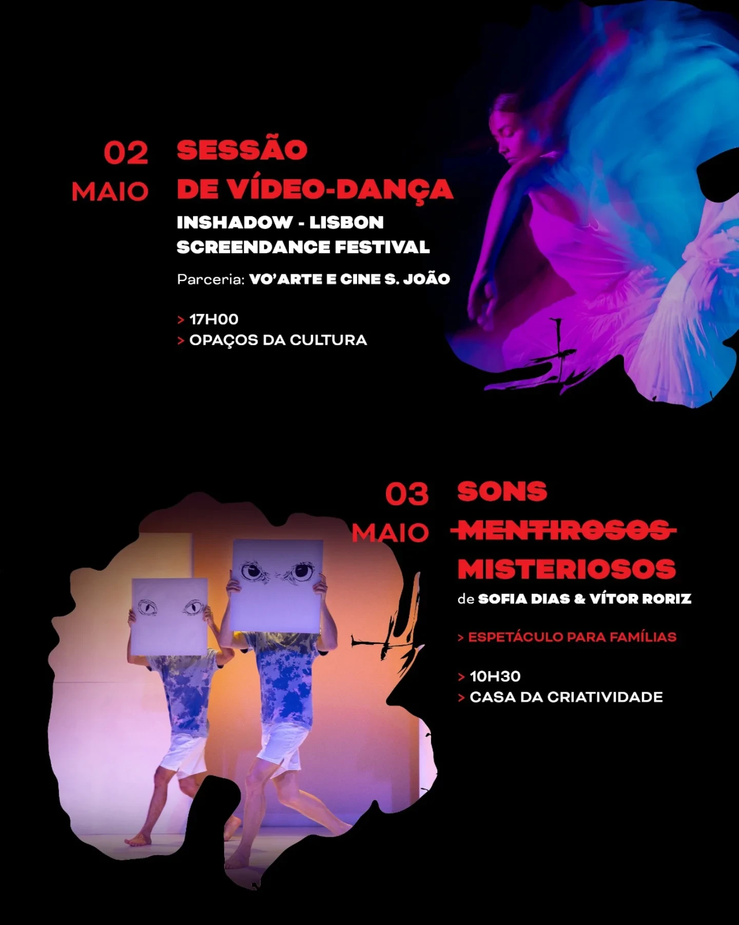 A edição de 2026, com curadoria de São Castro, inclui momentos como HALLEY, da companhia Led Silhouette, uma masterclass com a companhia, o Programa Jovens Coreógrafos, a Sessão de Vídeo-Dança InShadow, o projeto participativo Gestos que atravessam o tempo e o espetáculo para famílias Sons (Mentirosos) Misteriosos.